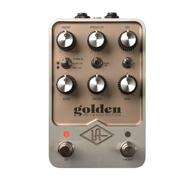 Universal Audio Golden Reverberator Effect Pedal Overview: Harnessing more than 20 years of reverb modeling expertise, UAFX Golden Reverberator puts a trio of iconic reverbs right at your feet. The tube-driven spring reverb of classic ’60s guitar amps. The dense and haunting sound of ’50s studio plate reverbs. The endless algorithmic wonder of early digital reverb hardware.