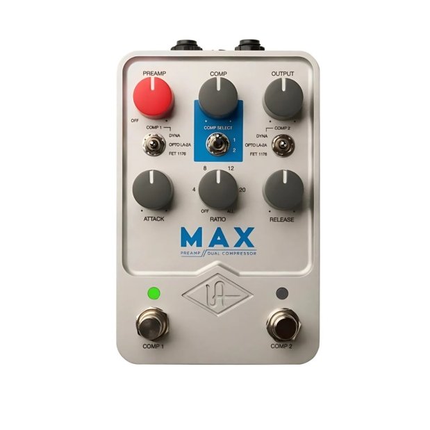 Universal Audio Max Preamp & Dual Compressor Pedal Overview: Built upon award-winning UAFX dual-engine processing and a burning desire for the ultimate in sonic legitimacy, Max Preamp & Dual Compressor puts the colorful sound of three legendary limiters and an iconic tube preamp, right at your feet.