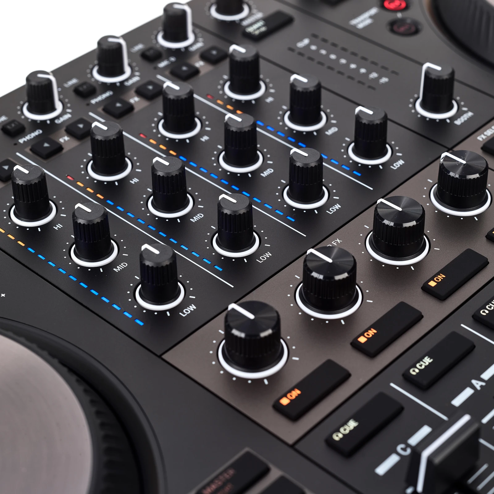 • 4 channels, each with a level fader, a 3-band EQ, a filter knob, a gain control, and 2 FX sends give you all of the mixing options you need