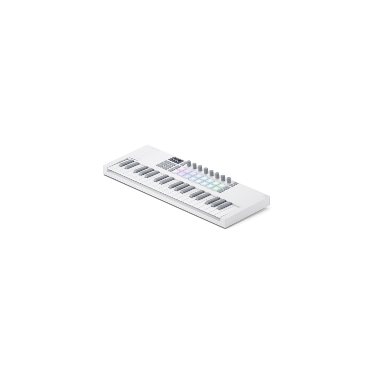 Launchkey Mini 37 White brings a sleek, modern look to a compact but powerful DAW controller. It features 37 white and grey mini-keys, eight encoders, and 16 velocity-sensitive pads for drums, instruments, and clip launching. Plus, Chord and Scale modes work with the OLED display to keep you in key.