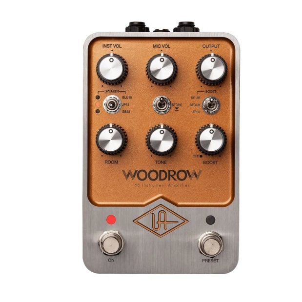 Universal Audio Woodrow ’55 Instrument Amplifier Pedal Overview: The UAFX Woodrow ’55 Instrument Amplifier pedal gives you the legendary American tweed tube amp sounds used by artists and producers for decades, from The Eagles to Chuck Berry to Neil Young. Built on powerful dual-engine processing and UAD modeling expertise, the Woodrow ’55 effects pedal packs sweet cleans, rich overdrive, and grungy distortion.